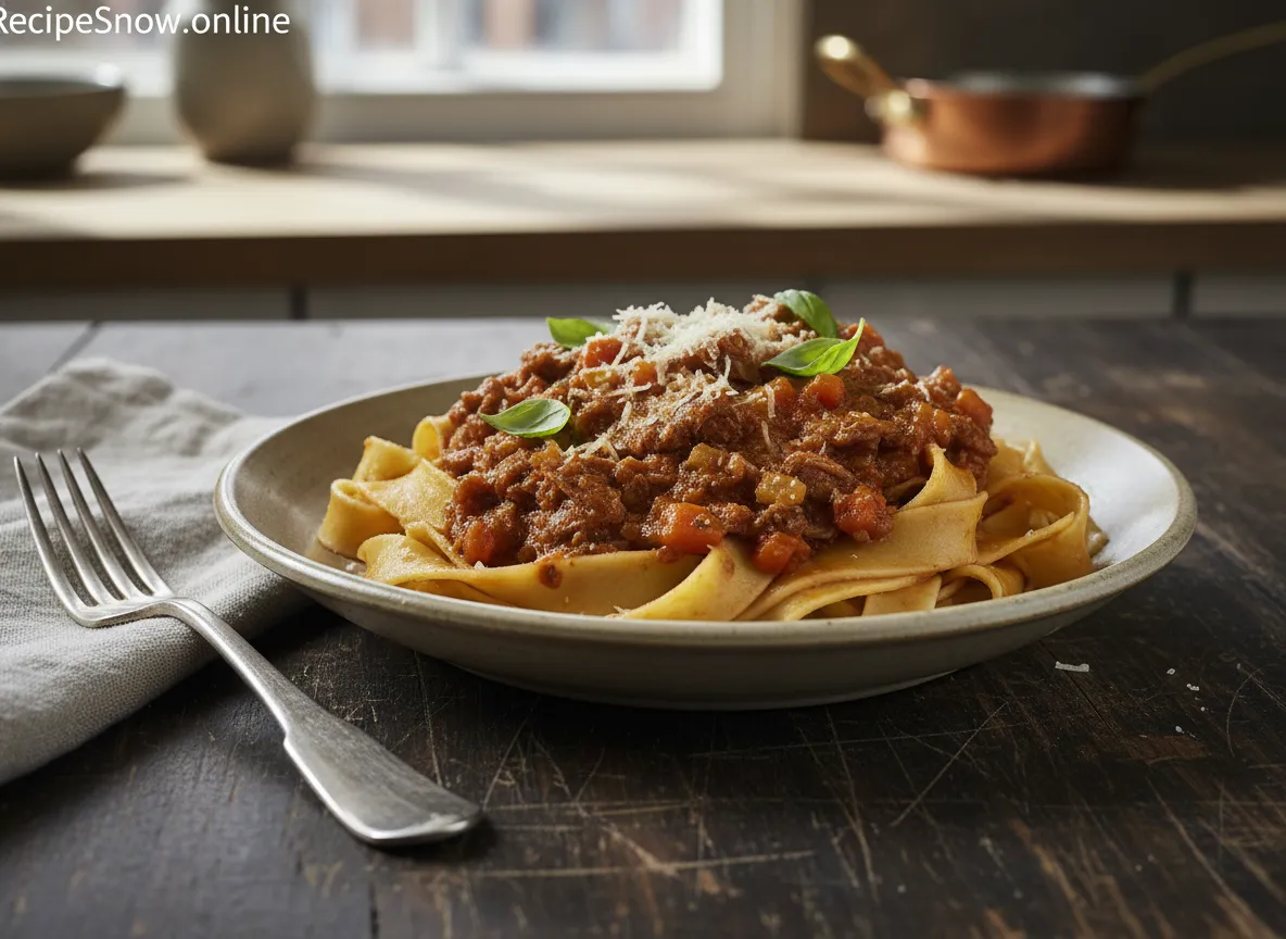 Beef Ragu with Pappardelle Recipe rewards patience and simple technique. Brown the beef well, reduce wine to concentrate flavor, and braise slowly until meat melts into a rich sauce. Toss wide pappardelle with the ragu using reserved pasta water so ribbons hold every strand of flavor. Small touches like finishing with cream or a drizzle of olive oil make the dish sing.
