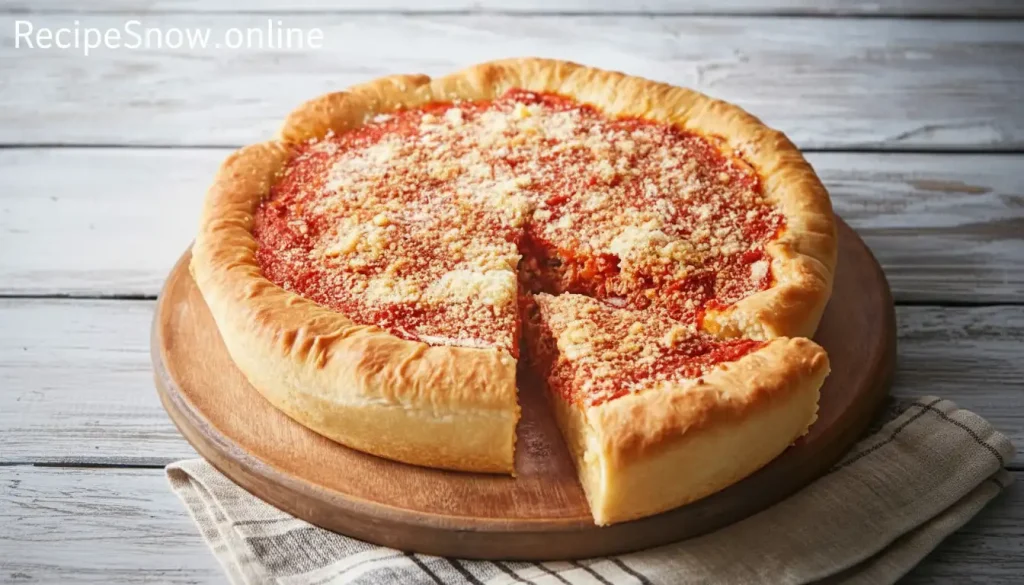Chicago Deep Dish Pizza Recipe delivers a full meal in every slice: a tender, buttery crust, a thick layer of melting cheese, and a chunky tomato sauce crowned with aromatic herbs. This is not a quick thin-crust pizza. It’s a slow, deliberate build where structure matters: the crust must hold rich fillings while staying flaky and crisp at the edges. Expect a satisfying contrast — browned, slightly crisp outer crust and a soft, saucy center that comforts with every bite. Read on for precise steps, timing cues, and chef tricks that make this heavyweight pizza sing.
