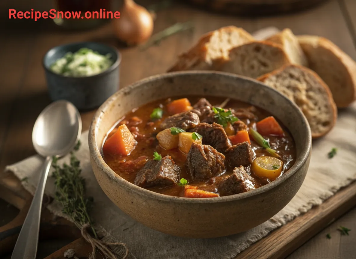 This Classic Beef Stew Recipe turns basic ingredients into deep comfort. A good stew is about texture and balance. You want beef that yields to a fork, a gravy that clings, and vegetables that still hold shape. This recipe walks you through browning, deglazing, and slow braising. Expect a savory, slightly sweet broth. Expect tender meat and a finish you will spoon over bread or potatoes. Read on for precise steps, chef tricks, and adaptable variations that keep readers engaged until the last bite.