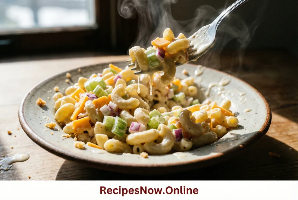 In the United States, macaroni salad represents summer barbecues and family gatherings. In Brazil, it appears during celebrations with colorful vegetables and a lighter dressing. Mexico adds brightness with lime and herbs. Germany prefers balance and subtle tang, while France focuses on elegance and texture. This recipe brings all those ideas together into one reliable, crowd-pleasing version that anyone can master. Expect a creamy, smooth texture with gentle tang, soft pasta, and crisp vegetables in every bite.