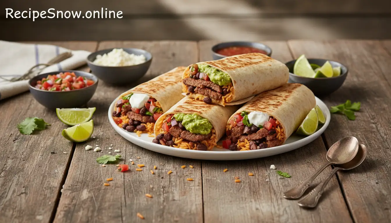 Serve burritos with crisp sides to cut richness. A bright cabbage slaw with citrus vinaigrette, pickled onions, or a simple green salad provide contrast. Offer tortilla chips and a trio of salsas — mild, smoky, and fiery — for customization. For drinks, sparkling water with lime, a crisp lager, or an iced tea with lemon complement the savory flavors and refresh the palate.
