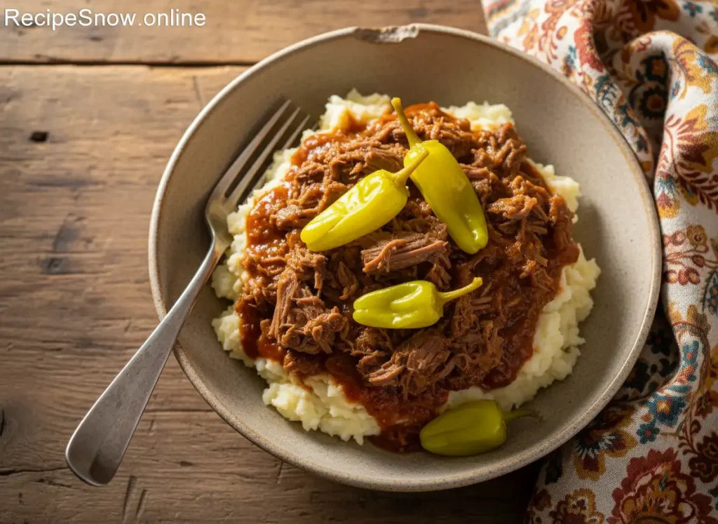 Mississippi pot roast Recipe is a standout for its simplicity and layered flavor. A seared chuck roast, buttery pockets, savory seasoning mixes, and pepperoncini combine into an easy, dramatic meal. The magic is patience. Low, gentle heat turns a humble roast into fork-tender bliss and yields a silky, tangy gravy that invites seconds.